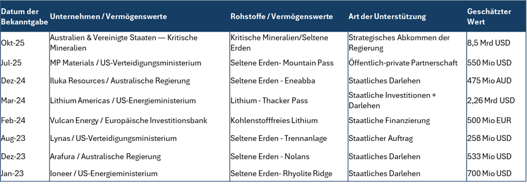 Kritische Mineralien – Beispiele für aktuelle Regierungsvereinbarungen